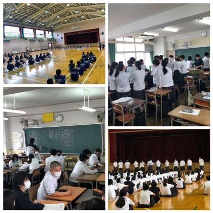 本日、午後からの体育大会予行が延期となったため、1年生は体育大会の学年種目について2年生は一泊移住の班隊形とキャンプファイヤーについて、3年生は修学旅行の決め事について時間を使いました。どの学年も活気があり、近々の行事が楽しみです。