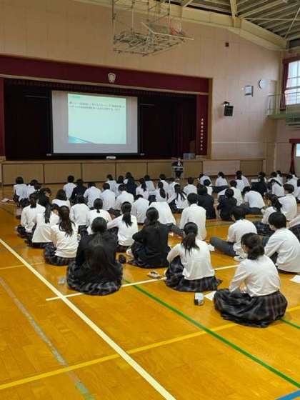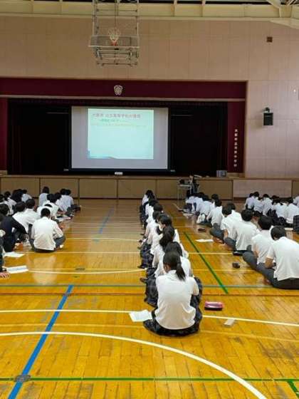 3年生になって初めての進路学習でした。自分の未来を見据えて、真剣な眼差しで話を聞いていました。