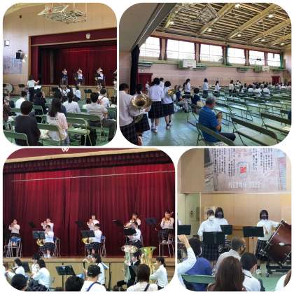 約100人近くの地域の方、保護者の方、吹奏楽部の先輩方、本校の生徒さんが来校されました。