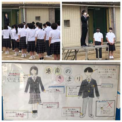 本日は、今週の金曜日までとなる2人の教育実習生の先生方から、お話をしてもらいました。その後に、来週の一泊移住に向けて各クラスのスローガンが発表されました。