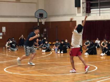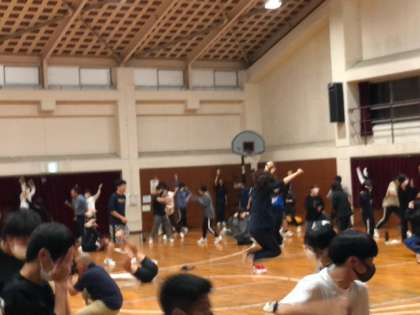 先生も一緒に全力でジャンケンの勝ち負けを表現しました。