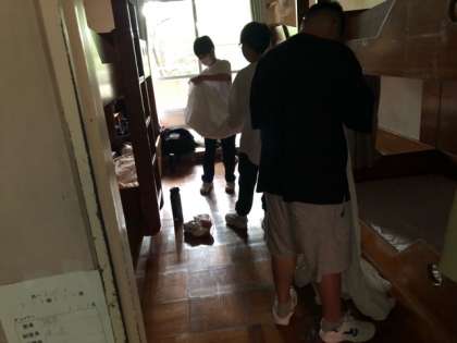 2人で協力して、昨日に教わったたたみ方通りに、片付けています。