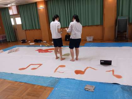 今年は書道パフォーマンスの用紙に美術部が絵を描いてくれます。