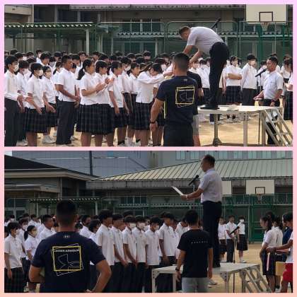 表彰伝達式では、バドミントン部、水泳部の表彰がありました。水泳部は20個以上の表彰があり、夏の努力が形になって表れたようでした。