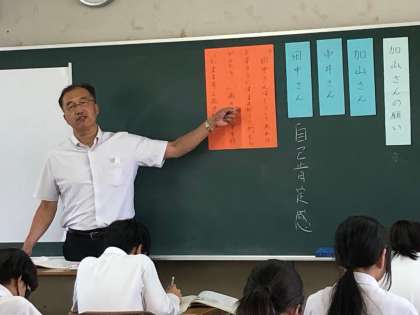 本日の5限目に、1年3組で校長先生による道徳の授業が行われました。