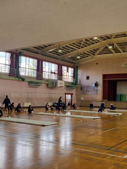 1年生男子はハードル走、女子はマット運動をしました。スポーツするのに気持ちいい季節になってきました!