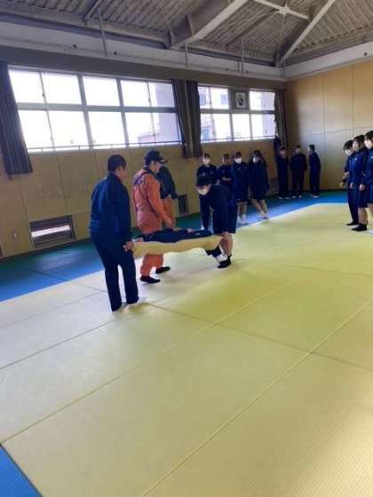 防災講話とハザードマップを使っての図上訓練や毛布を使っての担架練習、水消化器訓練を体験しました。いざという時に行動ができるようにしましょう。