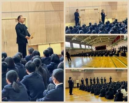 続いて、生徒指導の先生からは、1年間の港南中学校を振り返った感想、春休みの過ごし方について、お話がありました。