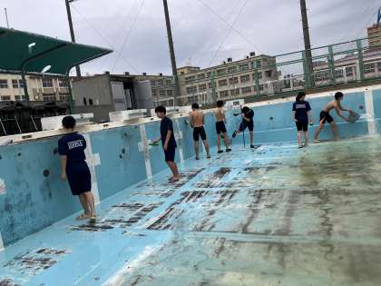 4月27日(土) 水泳部によるプール清掃