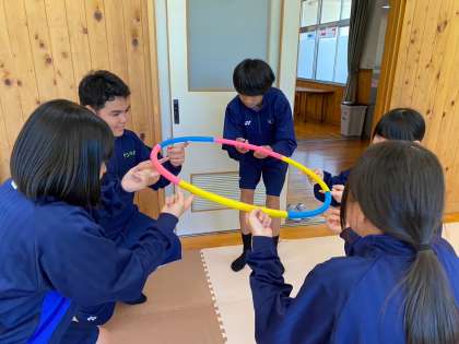 ヘリュウムリングというアクティビティに、どのクラスも苦戦しています。