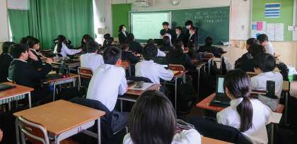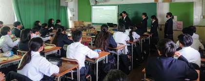 1年2組、1年3組での発表の様子です。