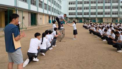書道部と少林寺拳法競技の部において、校長先生より表彰していただきました。