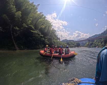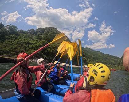 各クラスごとに分かれてラフティングを行いました。とても天気が良く暑かったですが、水の中に入ると冷たくて気持ち良かったですね!!