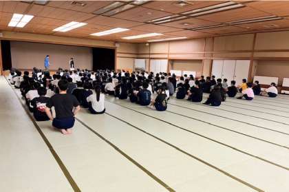 各クラスごとに分かれて行っていた入浴と夕食も終わり、入館式を行いました。