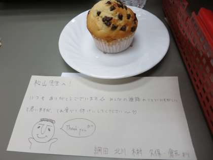 休み時間になると、3年生の生徒が職員室にカップケーキを運んできてくれています。