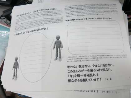 その時に使われた学年通信です。