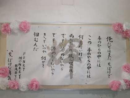 右の写真も、生徒会の花びらです。廊下や窓に貼られています。