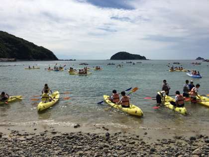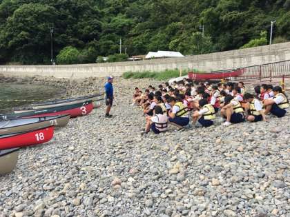 平成29年6月6日(火)第1学年が和歌山の日高にある「堺市立日高少年自然の家」を目指し、朝の8時40分に学校前をバスで出発しました。初日は天気も良く、波も穏やかでカヌーやシーカヤックなどの体験学習を行っています。