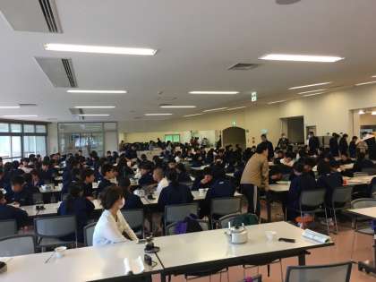 これまでのところ大きな怪我や病気も発生せず、順調にスケジュール通りに進んでおります。2日目に入り天候は、すっきりしませんが、風も弱く波も穏やかで海のメニューも無事に終了しました。現在、昼食を食堂でいただいております。この後、13時頃に大阪へ向け現地を出発する予定です。なお道路状況により多少の時間のずれが、あると思われますが、15時30分に学校着、16時に解散を予定しています。