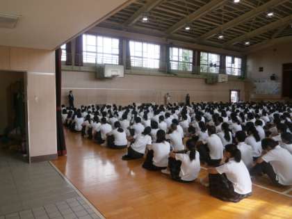 平成29年8月25日(金)午前9時 本校の体育館で二学期の始業式が行われました。長い夏休みが終わり久しぶりに学校生活が始まります。校長先生からは新学期へ向けての心構え、飯田先生からは生活指導に関するお話、その後多くの部活動が夏休み中に獲得した賞状などを受け取りました。二学期は体育大会や文化祭をはじめ多くの行事が詰まっております。今後ともご協力・ご支援を賜りますようよろしくお願いいたします。