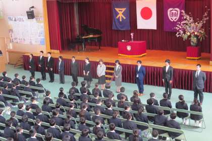 新しい制服に身を包み、不安や希望を胸に私たちは今日、港南中学校に入学します。