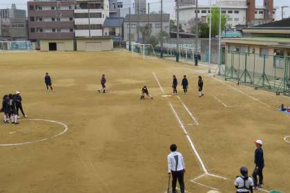 早朝より、ソフトボール部の皆さんが試合準備を。