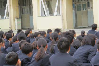 全校集会の集合状態はとってもすばらしいです。
