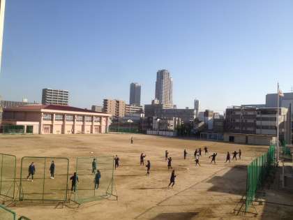 今日も元気にソフトボール部は、朝の練習をしています。素晴らしい!