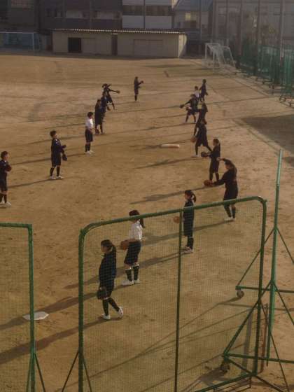 今日も元気に、ソフトボール部は朝から練習をしています。