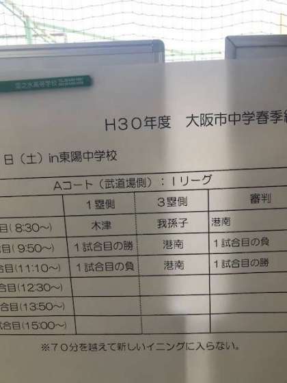 1回戦 我孫子中学校 1ー11 4回コールド勝