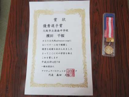 女子 バスケットボール部 優秀選手賞 濱田 千桜さん