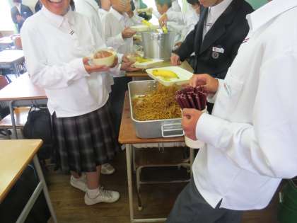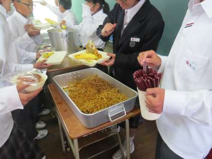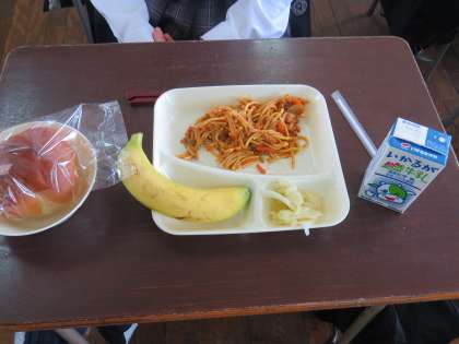 5月11日(金) 給食 カレースパゲッテイ キャベツのサラダ バナナ