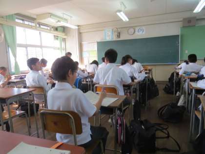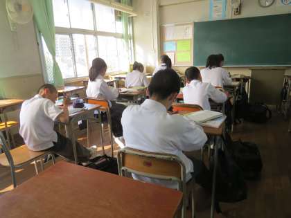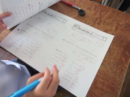 1年生の教室で数学の勉強会が行われいます。