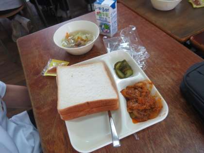 じゃがいものミートグラタン スープ きゅうりのピクルス