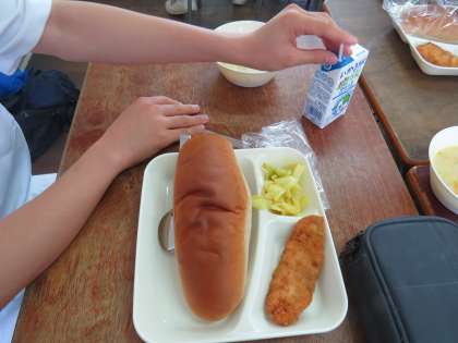 サーモンフライ 豆乳コーンスープ キャベツのカレーソテー