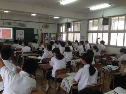 先生の質問に積極的に手を挙げて答える生徒もいます。