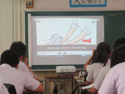 外国語表現の能力の向上のため、スピーキング活動を取り入れています。