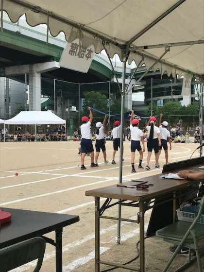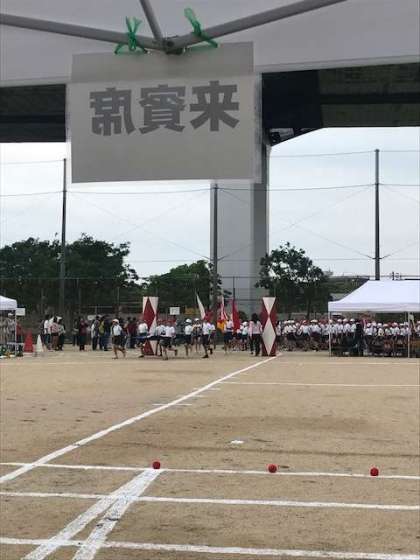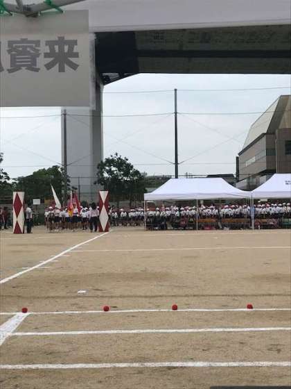 天候が気になりますが、児童の皆さんの元気で、梅雨空を吹き飛ばせ。 多目的グランドにて。