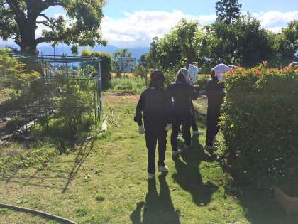 ハーブの香りが漂う農園で、様々な作物を実際に五感を使って教えてくださってました。