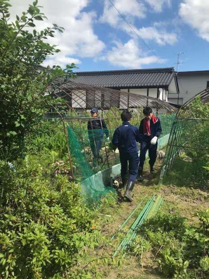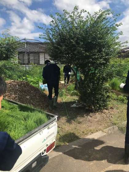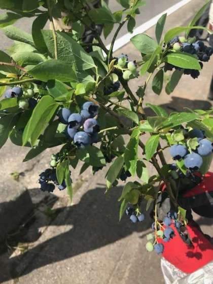根に肥料として、草の苗をかぶせます。甘ズッパイ、ブルーベリーをいただきました。
