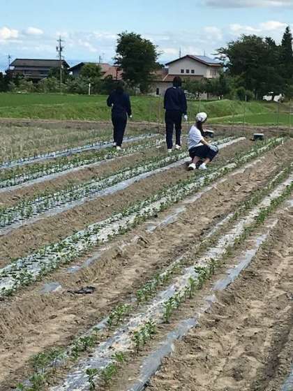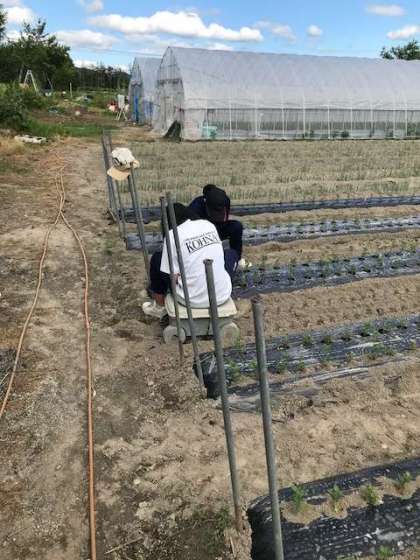 苗が小さく、土を周りに入れ、苗をしっかりそだてます。