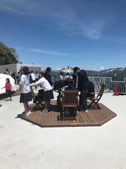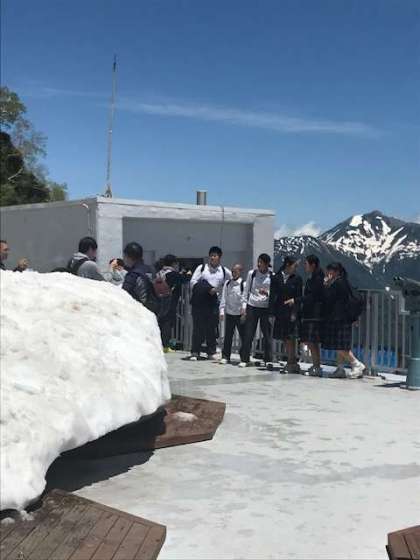 大観峰 雪渓 がまぶしいです。