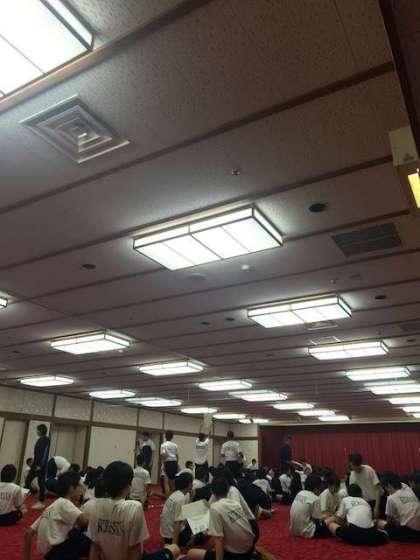 ○ ? クイズ 先生クイズとイントロクイズ 各班別対抗 優勝 4組 5班 おめでとう。