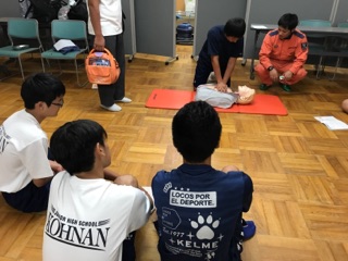 保健委員の活動の一環として普通救命(AED)講習会を行いました。応急処置に関する正しい知識と技術を身につけることができました。