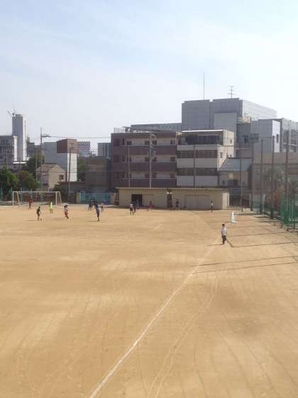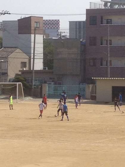 今日も既に、気温は30度を超えています。朝のグランドは、サッカー部です。