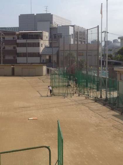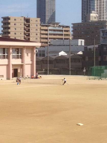 おはようございます。今日も30度越えです。朝の練習の準備を、テニス部とソフトボール部がおこなっています。