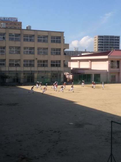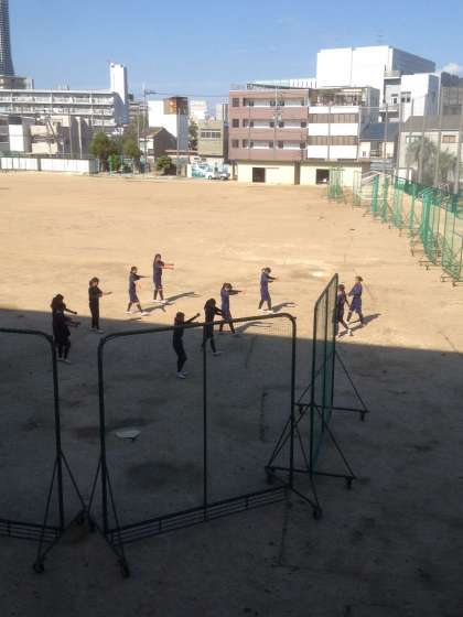 野球部とソフトボール部、テニス部がグランドにて練習しています。