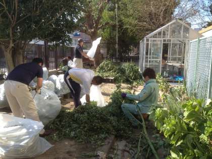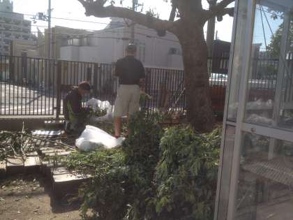 本校の教職員が放課後の時間を利用して、散乱した植栽の片付けをしています。ありがとうございます!