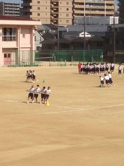 初めての練習です! 手を離してしまう生徒、こけてしまう生徒等、多数でした。