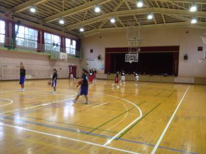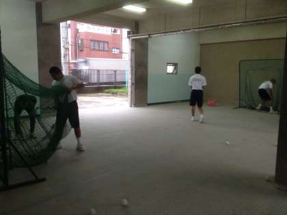 朝の練習は、野球部がピロティで、バスケ部が体育館でおこなっています。